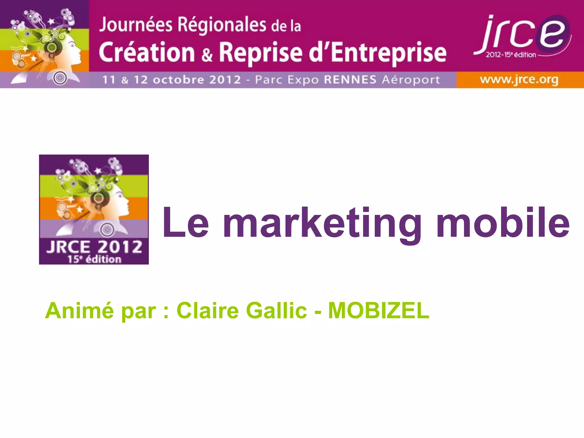 Le marketing mobile est défini comme l'utilisation du téléphone mobile pour atteindre les consommateurs de manière ciblée, basée sur des principes tels que le renforcement de la présence de la marque et la fidélisation de la clientèle. Les stratégies comprennent la géolocalisation, des jeux concours, et l'amélioration de l'expérience utilisateur pour faciliter l'acte d'achat. Les pratiques exemplaires incluent l'utilisation de technologies comme le one-click d'Amazon et des cartes de fidélité dématérialisées.