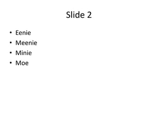 Le document présente une série de diapositives contenant des listes de mots et d'États. Les diapositives incluent des éléments variés sans explication détaillée. Il semble s'agir d'une présentation visuelle simple.