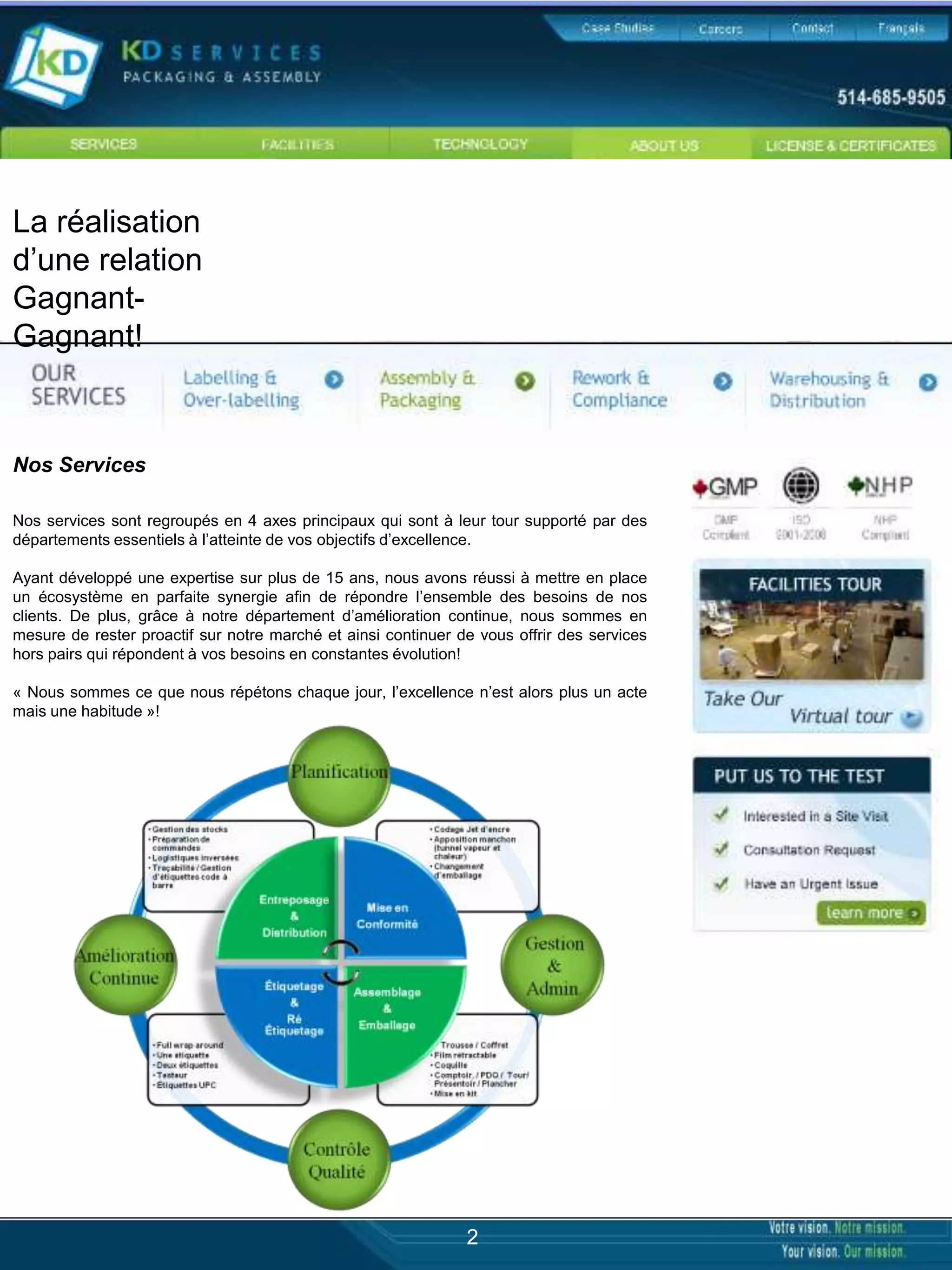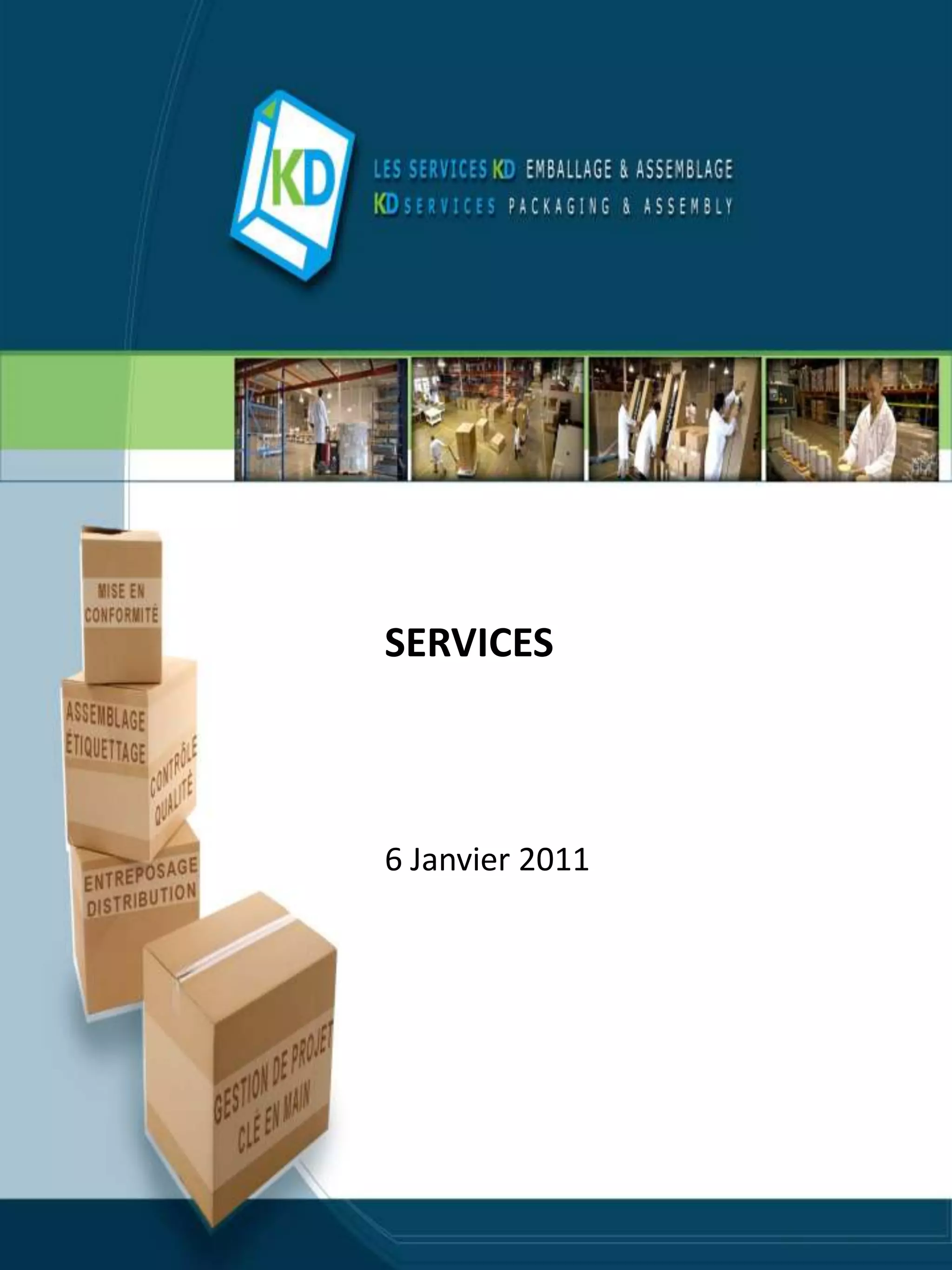 Le document décrit les services offerts par une entreprise spécialisée dans l'étiquetage, l'emballage, l'assemblage et la mise en conformité pour le marché canadien. Avec plus de 15 ans d'expertise, l'entreprise utilise des équipements de pointe pour répondre aux diverses demandes de ses clients, tout en s'engageant à l'amélioration continue. Elle se positionne comme un partenaire clé pour assurer le respect des normes et la réalisation de promotions sur mesure.