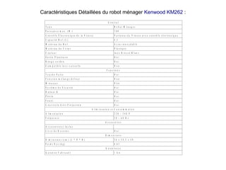 Le Kenwood KM262 est un robot ménager combinant les fonctions d'un robot pâtissier et d'un robot multifonction, offrant divers accessoires pour pétrir, mixer, hacher, et préparer des jus. Il dispose d'un moteur de 700W, d'un bol en inox de 4,3L et de plusieurs vitesses réglables, facilitant ainsi la préparation de différentes recettes. Les retours des utilisateurs soulignent sa rapidité, son efficacité et son excellent rapport qualité-prix.