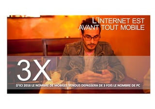 Le document présente les résultats d'une étude sur l'utilisation des applications mobiles par les utilisateurs de smartphones et de tablettes en France, soulignant des comportements et préférences distincts. Il fournit également un cadre en trois étapes pour réussir le développement d'applications, axé sur la compréhension des usages, l'évaluation et le suivi de l'efficacité. En outre, il aborde l'évolution du marché mobile, avec des données sur les types d'applications utilisées et leur impact sur les marques.