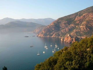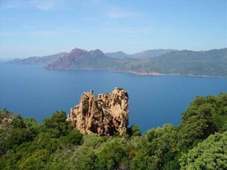 Le document présente une liste de sites touristiques et de paysages en Corse, incluant des lieux emblématiques tels que le rocher de Scandola, le port d'Ajaccio et les calanques de Piana. Il mentionne également des villages et attractions comme Calvi, Propriano, et le lac de Melo. La liste évoque la beauté naturelle et la diversité des paysages corses.