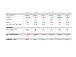 Le document aborde la définition et le suivi des indicateurs clés de performance (KPI) pour optimiser le marketing digital. Il présente les outils analytiques et les différentes métriques pour évaluer l'engagement, la rétention et la conversion des utilisateurs, tout en insistant sur l'importance d'une proposition de valeur unique et d'une stratégie éditoriale efficace. Les méthodes de mesure incluent l'analyse des comportements en ligne, le taux de rebond, et la conversion des mots clés organiques.