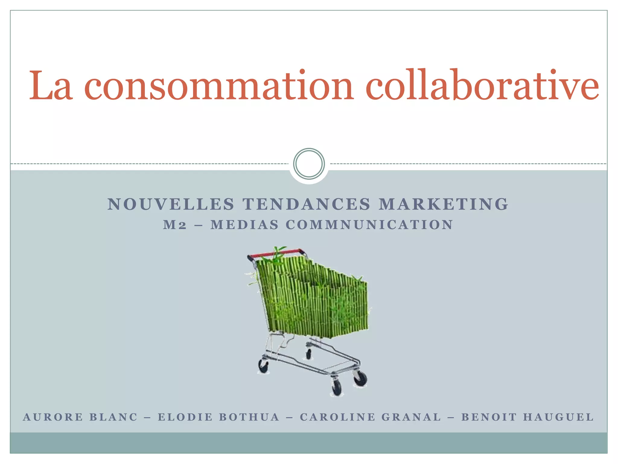 Le document analyse la consommation collaborative en France, une tendance en pleine expansion qui répond à des enjeux économiques et environnementaux. Il examine les motivations des consommateurs, telles que les économies réalisables et le renforcement des liens sociaux, ainsi que les réticences face à cette pratique, comme le manque de confiance et la dépendance à la technologie. Enfin, la conclusion soulève la question de l'avenir de la consommation collaborative et des défis à surmonter pour intégrer les consommateurs réticents.