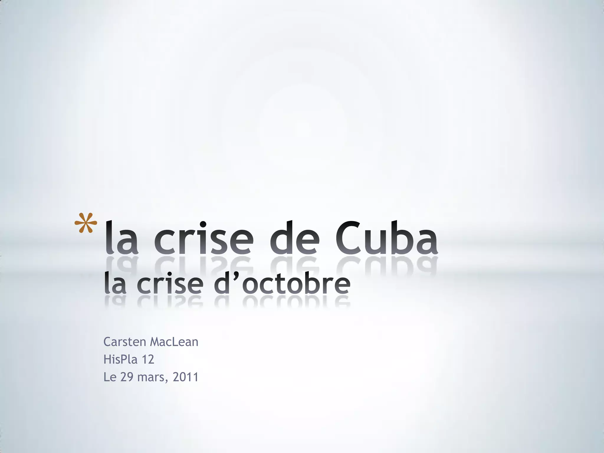 Le document traite de la crise des missiles de Cuba en octobre 1962, un événement majeur de la guerre froide qui a presque conduit à une guerre nucléaire. Il présente les causes, les moments clés et les personnages impliqués, ainsi que les répercussions sur les relations internationales et la sécurité mondiale. Des références à des sources académiques et historiques sont également incluses.