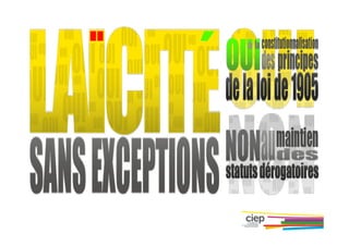 Le document traite de la laïcité en France, explorant sa définition, ses origines, ses implications politiques et sociétales, ainsi que son avenir. Il souligne la loi du 9 décembre 1905 qui établit la séparation entre l'État et les religions et la loi du 15 mars 2004 qui interdit les signes religieux dans les écoles publiques pour garantir la neutralité. La laïcité est présentée comme un principe essentiel qui promeut la liberté de conscience et l'égalité entre tous les citoyens, tout en soulignant la nécessité d'un vivre-ensemble respectueux des différences.