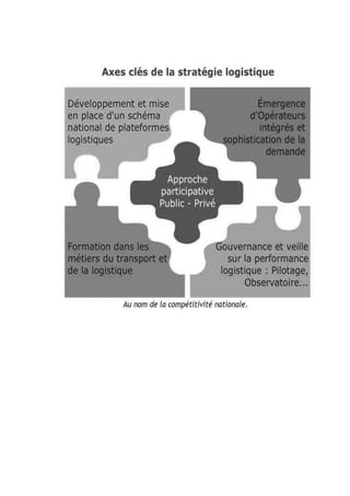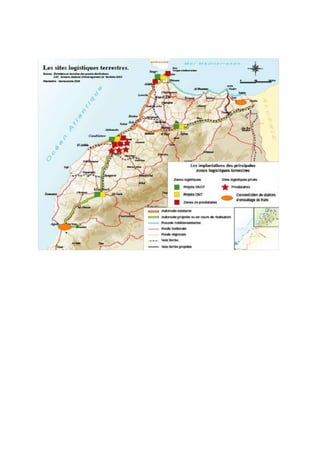 La logistique, définie comme la gestion des flux de produits et d'informations, joue un rôle essentiel dans la compétitivité économique du Maroc, qui cherche à moderniser son infrastructure logistique pour mieux répondre aux défis de la mondialisation. Une stratégie nationale logistique a été mise en place pour améliorer la performance logistique du pays, visant à réduire les coûts logistiques du PIB et à renforcer l'impact des programmes de santé et des échanges commerciaux. Cependant, des retards dans l'implémentation de cette stratégie et des défis socio-économiques demeurent des obstacles à la réussite des initiatives logistiques.