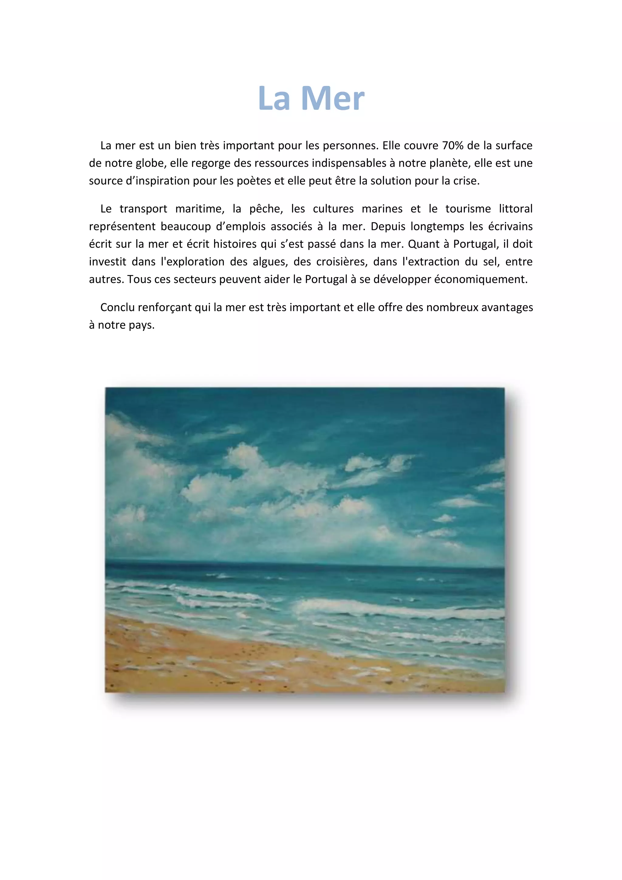 La mer est essentielle pour l'humanité, couvrant 70% de la Terre et fournissant des ressources vitales. Elle est à la fois une source d'inspiration et un moteur économique à travers des activités telles que le transport maritime, la pêche et le tourisme. Le Portugal doit investir dans des secteurs liés à la mer pour stimuler son développement économique.