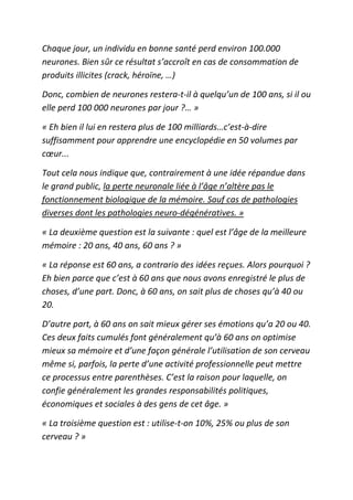 La conférence explore les relations entre la mémoire et le jugement, en soulignant que la perte neuronale liée à l'âge n'impacte pas nécessairement la mémoire, qui est souvent optimale à 60 ans. Elle examine également les niveaux d'attention qui influencent la mémorisation et la prise de décision, tout en discutant des erreurs de jugement liées aux distorsions cognitives et aux biais de confirmation. Enfin, elle met en évidence comment ces biais affectent notre évaluation des situations et nos choix, en insistant sur le rôle émotionnel dans les processus décisionnels.