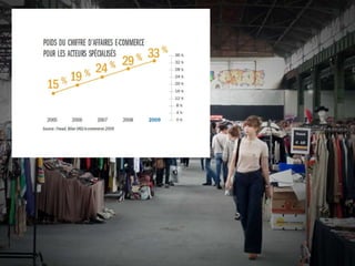 Le document présente une analyse du marché de la mode en ligne, soulignant l'importance croissante de l'e-commerce avec 5,6 % des dépenses d'habillement en France. Il évoque des stratégies d'e-marketing et d'e-merchandising pour optimiser la rentabilité des points de vente et améliorer l'expérience client. Enfin, il aborde les techniques de création de trafic et de gestion de la relation client pour fidéliser la clientèle.