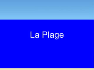 La description d'une belle plage évoque un soleil brillant et du sable doré. Elle inclut un petit bateau rouge, un grand parasol multicolore, des enfants et des coquillages blancs. C'est une image agréable et ensoleillée de vacances idéales.