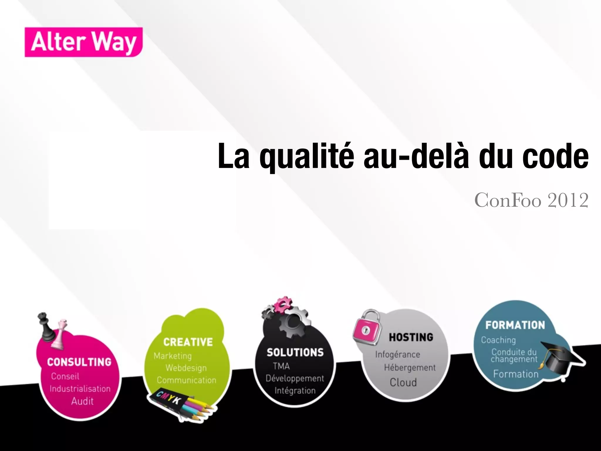La présentation de Jean-Marc Fontaine aborde l'importance de la qualité dans le développement d'applications PHP, en insistant sur la maintenabilité, la testabilité et la documentation. Il souligne la nécessité de simplifier le code, d'éviter le code mort et dupliqué, et de garantir que l'application soit fonctionnelle et facilement déployable. En fin, il évoque que la sécurité et la tolérance aux erreurs sont essentielles pour assurer la fiabilité des applications.