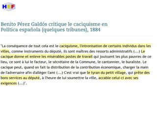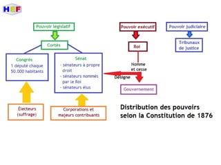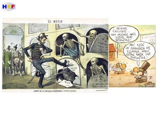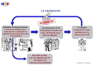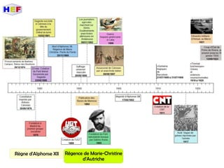 Le document traite de la période de la Restauration en Espagne, dominée par la monarchie d'Alphonse XII et marquée par des luttes internes telles que les guerres carlistes et la guerre hispano-américaine. Il met en lumière la montée des nationalismes périphériques, les inégalités économiques et la crise politique du pays à la fin du XIXe siècle. Les mouvements sociaux et les revendications populaires, notamment à travers des partis comme le PSOE et des mouvements anarchistes, illustrent les tensions croissantes face à un État central incapable de répondre aux aspirations régionales.