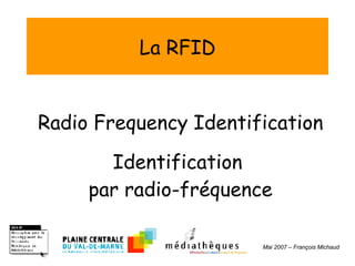 Le document retrace l'évolution et les applications de la technologie RFID depuis ses débuts dans les années 1940 jusqu'à son utilisation dans les bibliothèques. Il traite également des normes techniques et de sécurité associées, ainsi que des éléments constitutifs d'un système RFID, soulignant les avantages pour le public et le personnel, ainsi que les défis liés à son adoption. L'accent est mis sur la normalisation et l'interopérabilité entre différents systèmes RFID.