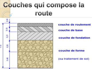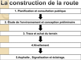 Le document traite de la construction et de l'entretien des routes au Maroc, en détaillant les étapes clés depuis la planification jusqu'à la réalisation avec des spécificités sur les types de routes. Il aborde également les problématiques liées aux infrastructures routières, les coûts de construction, et la législation en matière de protection de l'environnement. En conclusion, il met en lumière l'importance des routes pour le transport au Maroc, qui reste le mode de déplacement dominant dans le pays.