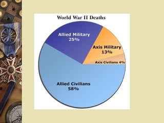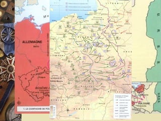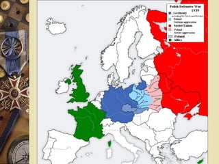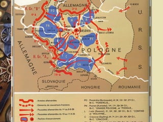 Le document retrace les événements clés de la Seconde Guerre mondiale, des débuts du conflit avec l'invasion de la Pologne à la victoire des alliés. Il aborde également la collaboration française sous Vichy, la résistance et les conférences internationales qui ont redessiné le monde d'après-guerre. Enfin, il souligne la création de l'ONU et le système monétaire établi lors de la conférence de Bretton Woods.