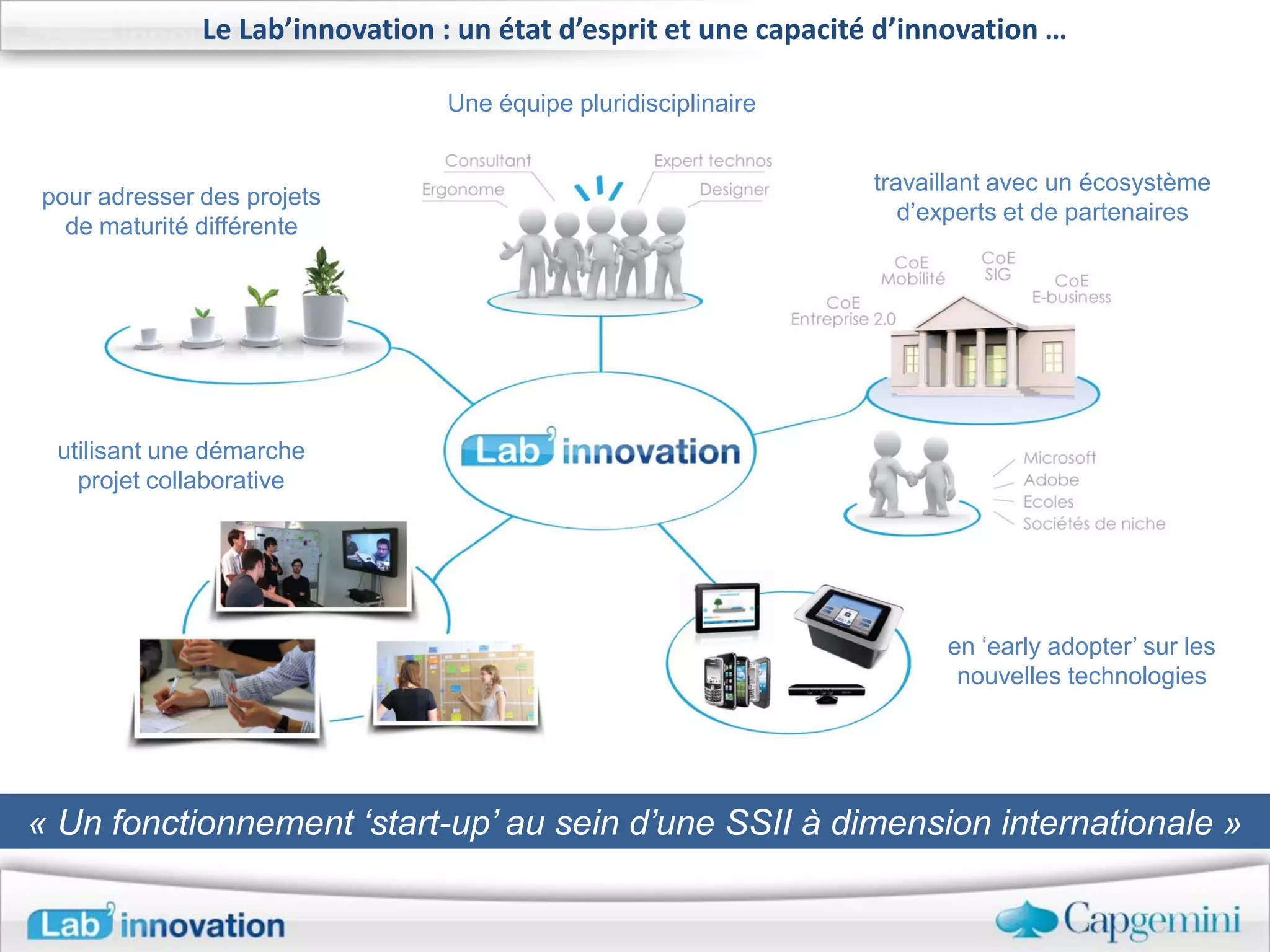 Le Lab' Innovation de Capgemini est une équipe pluridisciplinaire dédiée à l'accélération des projets innovants par l'utilisation de nouvelles technologies et une approche collaborative. Il propose un modèle 'as a service' pour accompagner les entreprises dans leurs démarches d'innovation, incluant des prototypes fonctionnels et techniques. Le Lab' s'engage à fournir une capacité d'innovation sur demande avec des processus simplifiés et des projets à forte valeur ajoutée.