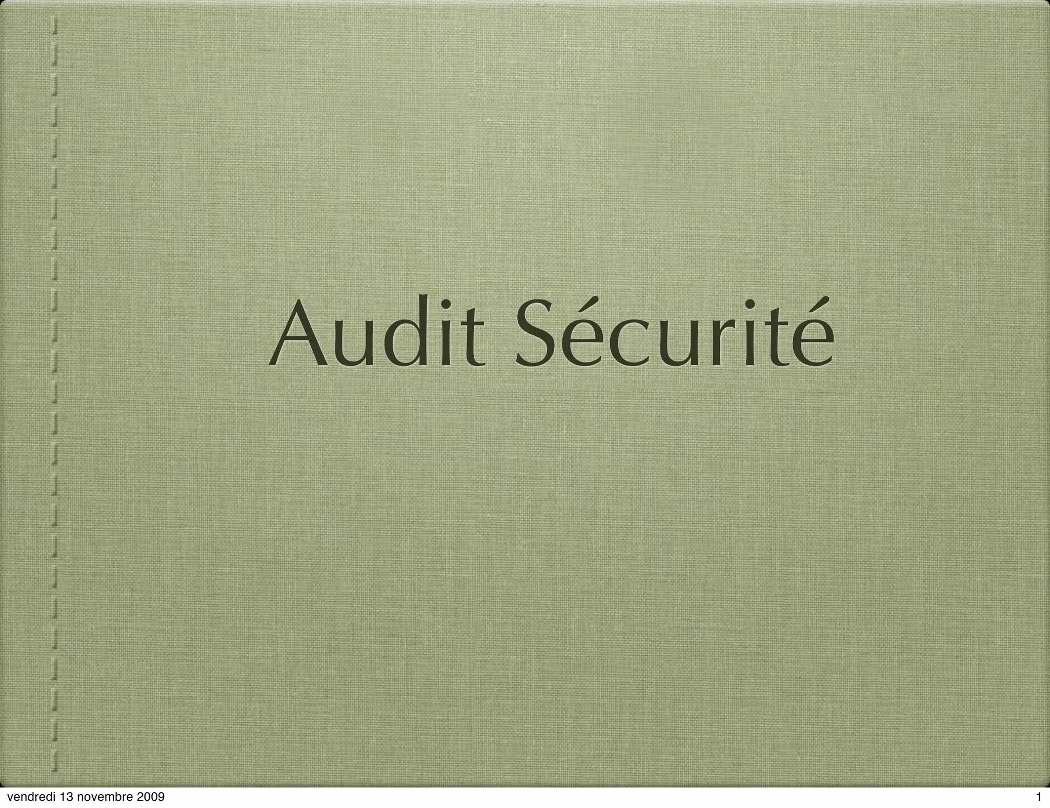 Le document présente un audit de sécurité centré sur des tests de boîte noire et des techniques d'audit, en incluant une variété d'outils et de méthodes pour identifier les vulnérabilités des applications. Il aborde également l'importance de l'analyse des logs et la nécessité d'effectuer des tests manuels et automatisés pour assurer la sécurité. Les intervenants partagent leurs expertises, avec un accent sur les logiciels libres et les outils de scan de vulnérabilité.