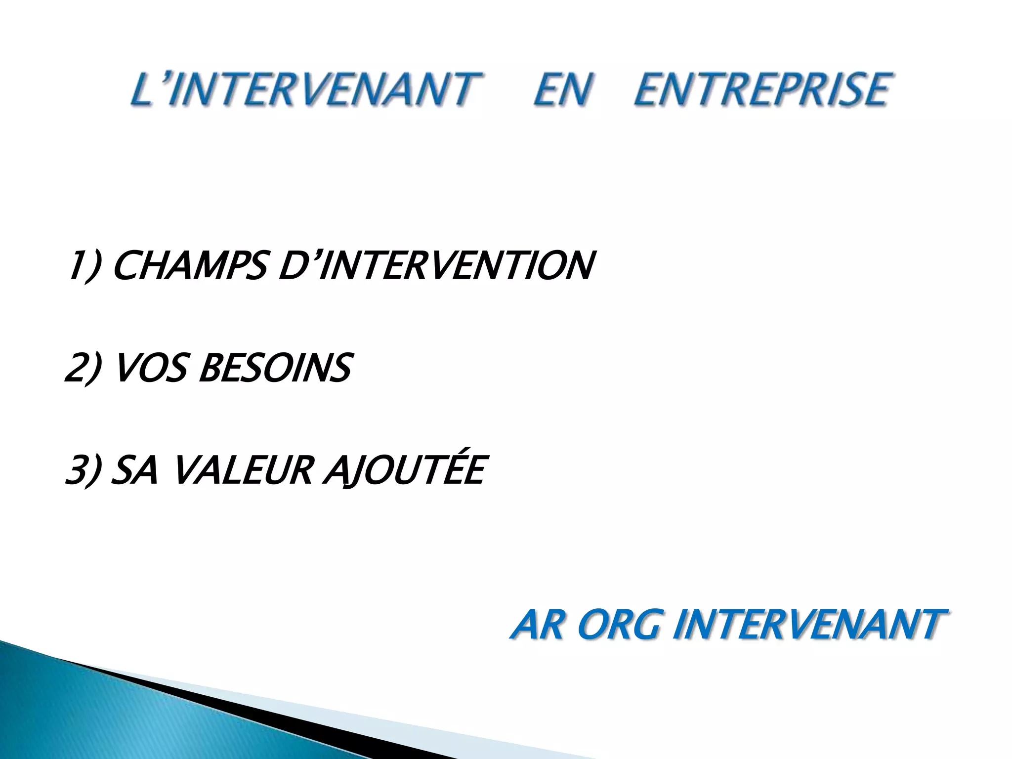 Le document traite de l'intervenant en entreprise, de ses champs d'intervention et de sa valeur ajoutée pour optimiser les activités des entreprises. Il décrit le rôle de cet intervenant dans le cadre d'ateliers méthodologiques visant à améliorer l'organisation, la direction et le management des entreprises. Finalement, l'intervention vise à développer les activités, accroître la productivité, et valoriser les compétences tout en s'assurant de la conformité aux normes ISO.