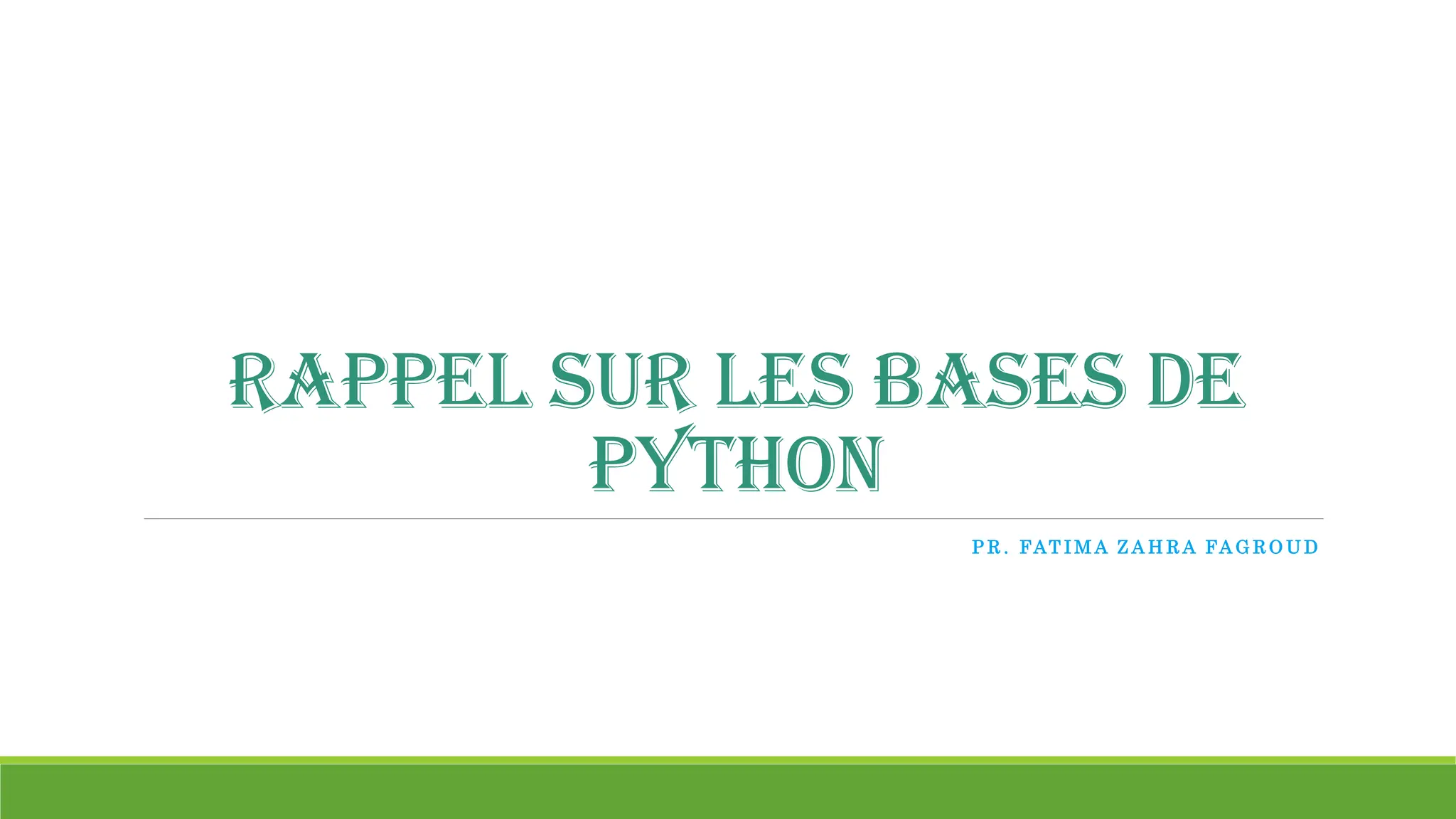 Le document rappelle les bases de Python, en se concentrant sur des éléments essentiels tels que les variables, les types de données, les opérateurs, les conditions et les boucles. Il s'agit d'un aperçu concis des concepts fondamentaux de cette langue de programmation. Ces éléments constituent les fondations pour écrire des programmes en Python.