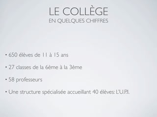 Le Collège de l'Archet accueille 650 élèves de 11 à 15 ans, incluant une unité pédagogique d'intégration pour 40 élèves avec des troubles cognitifs. L'établissement propose un enseignement général et professionnel, favorisant l'intégration des élèves dans certaines matières selon leurs capacités. Un projet personnalisé de scolarisation est mis en place pour chaque élève, avec une évaluation annuelle et un examen final en fin de cycle d'orientation.