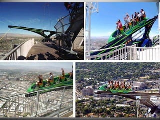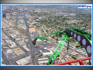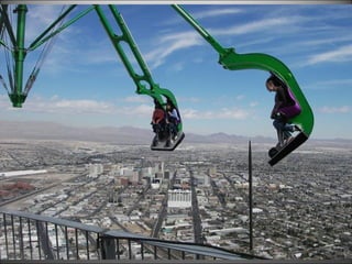La Stratosphere Tower de Las Vegas mesure 350 mètres et fait partie de l'hôtel Stratosphere. Elle est plus haute que la Tour Eiffel et dispose d'un restaurant panoramique offrant une vue unique, ainsi qu'un parc d'attractions axé sur des sensations fortes liées au vide.