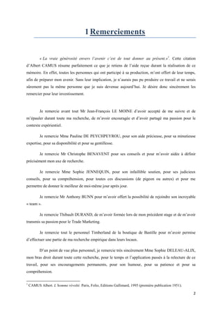 Le mémoire de Laura Deleau, réalisé dans le cadre de son Master 2 en Marketing à l'Université Paris Ouest, explore l'influence de la répétition d'expériences sur l'engagement envers la marque Timberland, dans le secteur outdoor. Il s'articule autour d'une revue de littérature sur les notions d'expérience, de confiance et d'engagement, suivie d'une étude empirique quantifiant l'impact de ces expériences sur les consommateurs. Les résultats indiquent qu'il existe une relation entre la répétition des expériences et l'engagement, bien que cette influence ne soit pas unique ou déterminante.