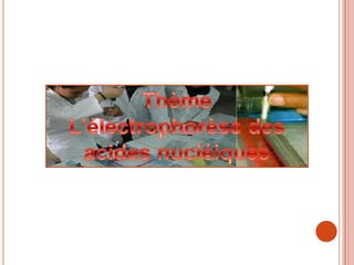 L'électrophorèse est une technique de séparation et d'analyse des molécules chargées par l'action d'un champ électrique, principalement utilisée en biochimie pour la séparation des acides nucléiques et des protéines. Les étapes incluent la préparation du gel d'agarose, le dépôt de l'ADN, et la révélation des fragments, avec différentes méthodes permettant d'analyser la taille des fragments d'ADN. Cette technique est essentielle dans des applications telles que la cartographie du génome, l'analyse de l'ADN et la détection de maladies génétiques.