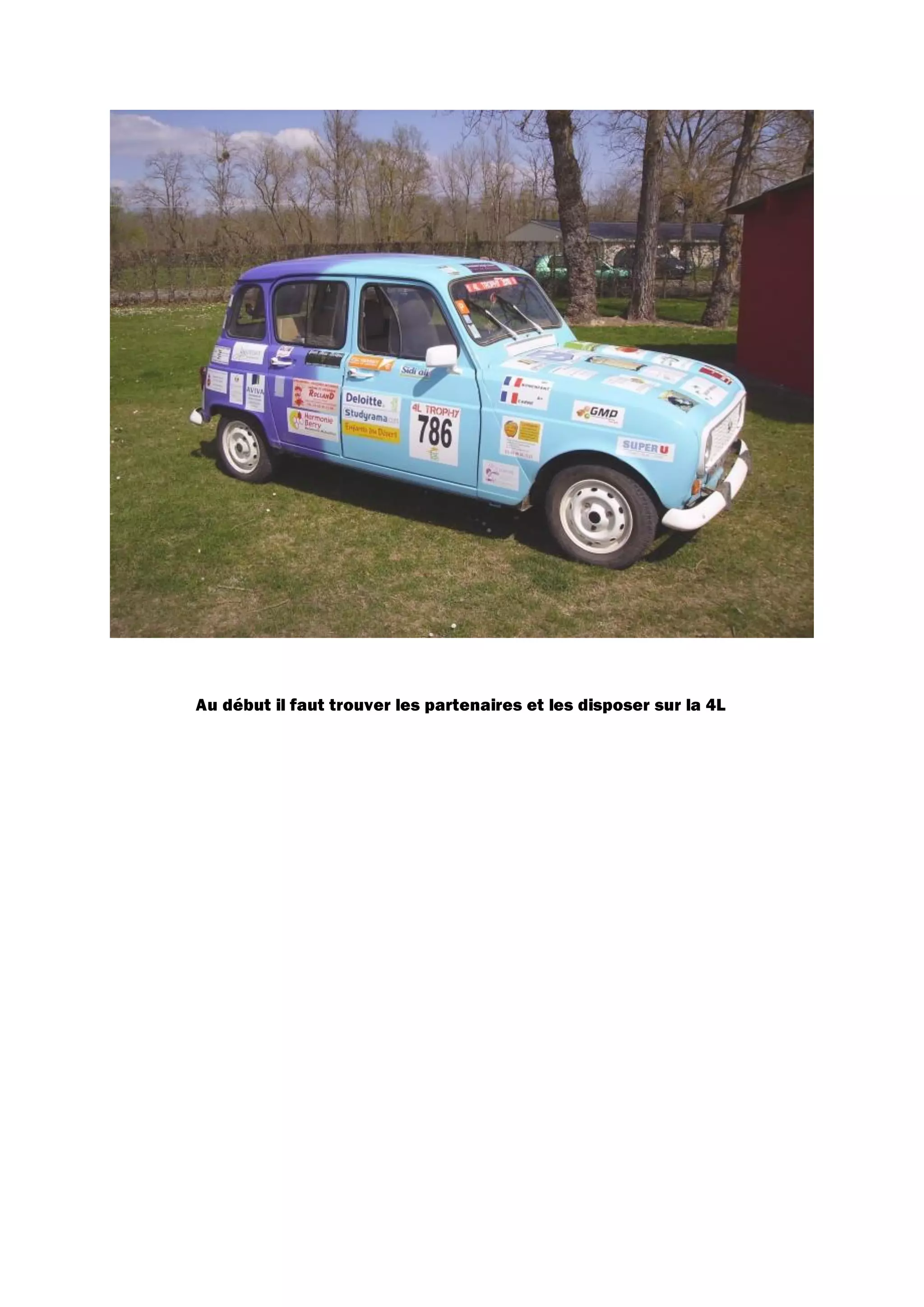 Le document présente une aventure en 4L dans le désert, mettant l'accent sur l'importance de l'esprit d'équipe et de débrouillardise. Les participants doivent trouver des partenaires pour le parcours. Trois pays seront visités au cours de cette expérience.