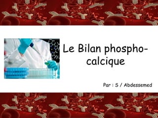 Le document traite du bilan phospho-calcique, soulignant l'importance du calcium et du phosphore dans l'organisme humain, ainsi que leur rôle dans diverses fonctions physiologiques. Il présente également les méthodes de prélèvement sanguin, les valeurs usuelles des dosages et les causes d'hypercalcémie, d'hypocalcémie, d'hyperphosphatémie et d'hypophosphatémie. L'interprétation de ces bilans est complexe et doit être faite dans un contexte clinique spécifique.
