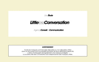 Le document présente une étude sur le marché du champagne, mettant en avant les défis auxquels il fait face, notamment une baisse des ventes et la pression sur les prix. Il souligne également l'évolution des comportements des consommateurs, qui cherchent des produits offrant le meilleur rapport qualité/prix, et la stratégie des marques pour s'adapter à ces changements. Enfin, des exemples de campagnes de communication des marques sont fournis, illustrant leurs efforts pour se démarquer sur le marché.
