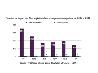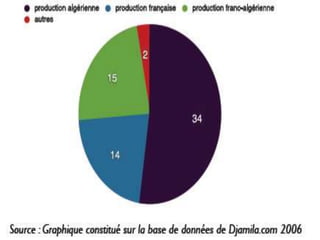 Le cinéma algérien a connu des hauts et des bas, passant de la gloire à une crise de production due à un désengagement de l'État. Les enjeux actuels incluent le financement, les infrastructures, et l'impact de la mondialisation sur la production et la représentation culturelle. Malgré des potentialités importantes, l'industrie reste fragile et non concurrentielle, avec une ambiguïté sur son avenir.