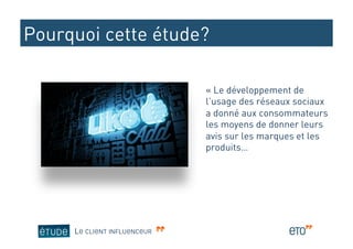 Cette étude de 2012 se concentre sur les caractéristiques et comportements des clients influenceurs en France, révélant qu'ils ont une influence significative sur les choix d'achat grâce à leur utilisation des réseaux sociaux. Les méthodes de recherche incluent un questionnaire auto-administré auprès de 3233 personnes, mettant en lumière la confiance des consommateurs dans les médias viraux. Les résultats montrent que 58% des internautes donnent leur avis sur les marques, et que 80% ont déjà recommandé un produit.