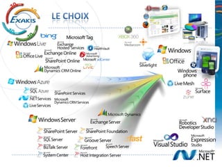 Le document présente un forum sur les solutions cloud de Microsoft, notamment Windows Azure et Office 365, ainsi que les défis rencontrés par les entreprises en matière de déploiement des services informatiques. Il souligne l'importance de l'agilité, de la réduction des coûts et de l'innovation dans les infrastructures informatiques. Plusieurs ressources et sessions de présentation sont mentionnées pour approfondir la connaissance de ces solutions cloud.