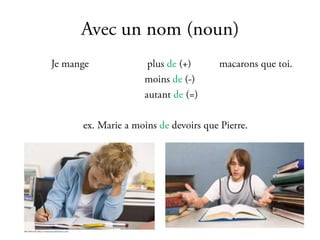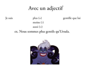 Le document présente une liste de questions comparatives sur diverses caractéristiques telles que la beauté, l'intelligence et les compétences artistiques. Ces questions concernent des jugements subjectifs entre différentes personnes. Il souligne un intérêt pour les comparaisons entre individus dans des domaines variés.