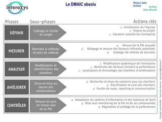 Ce document présente une méthodologie DMAIC détaillée pour l'amélioration des performances d'une entreprise, en incluant les phases de définition, de mesure, d'analyse, d'amélioration et de contrôle. Il décrit les étapes clés, les rôles des membres de l'équipe, ainsi que des outils et techniques pour collecter et analyser les données nécessaires. L'objectif est de formuler des solutions basées sur des analyses systématiques des processus et d'assurer leur mise en œuvre efficace.