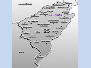 Le document décrit des sites historiques et culturels de la région du Doubs en France, notamment à Besançon et ses environs. Il mentionne divers monuments, églises, et points d'intérêt comme le théâtre municipal, la citadelle et des fontaines emblématiques. Le contenu reflète l'importance historique et architecturale de la région, avec des références diverses aux époques et aux constructions.