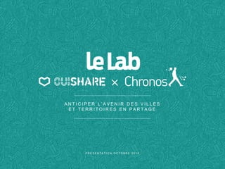 Le document présente le lab Ouishare x Chronos, qui accompagne les acteurs des villes et territoires dans l'innovation de services en analysant les usages émergents et en créant des alliances entre collectivités, entreprises, et citoyens. Il met l'accent sur la prospective et l'évaluation des impacts des technologies numériques, tout en organisant des événements et des analyses stratégiques pour éclairer les enjeux contemporains. Le lab œuvre également à la diffusion des connaissances et à la valorisation des pratiques collaboratives au sein des écosystèmes locaux et internationaux.