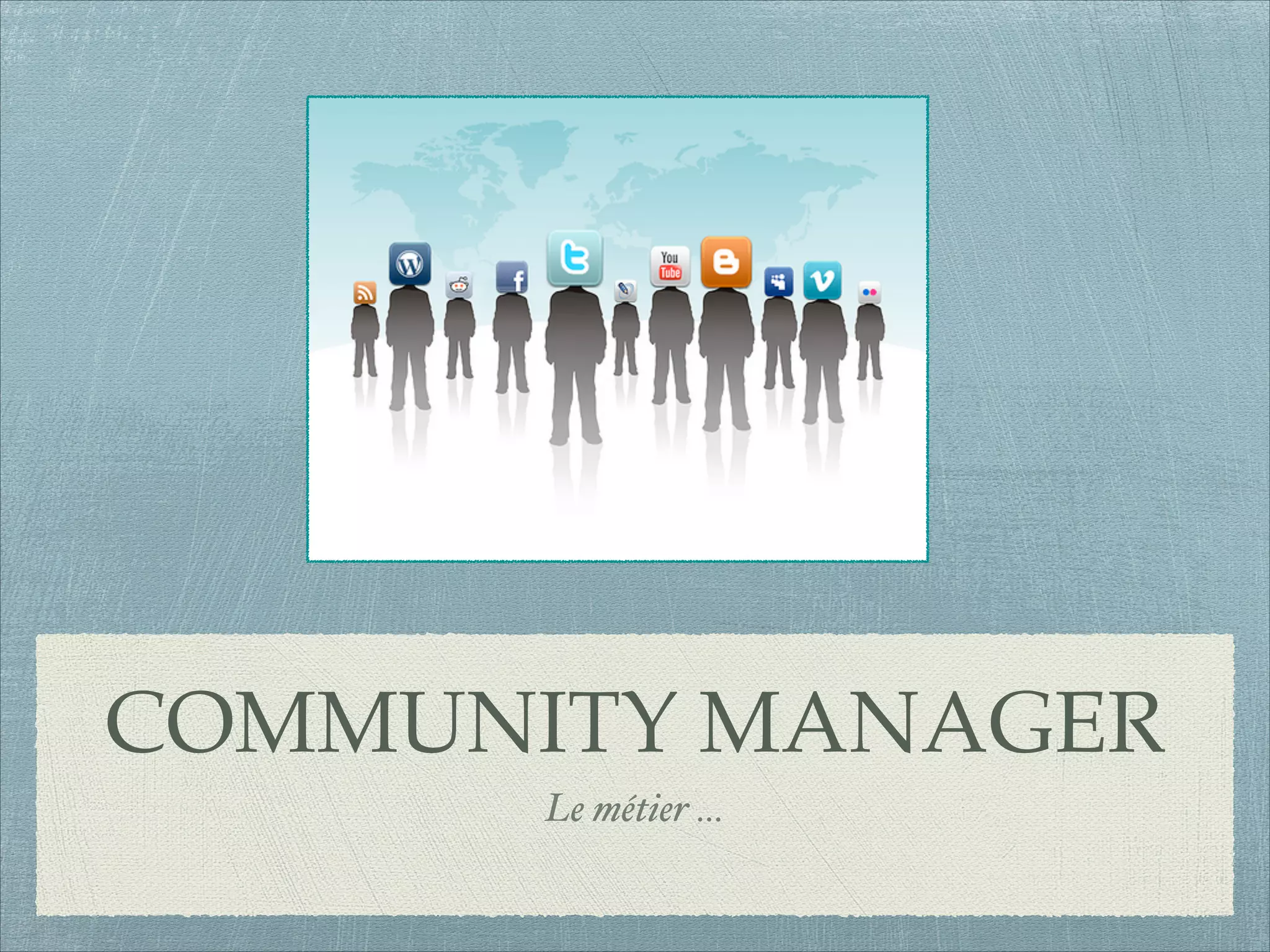 Ce document décrit le rôle du community manager, mettant l'accent sur ses missions telles que la création de stratégies pour animer les communautés en ligne, la gestion de l'e-réputation, et l'analyse des résultats des actions menées. Il souligne également les compétences nécessaires pour exercer ce métier, ainsi que les perspectives salariales et les tendances du marché en 2013. Enfin, il souligne l'importance d'une communauté fidèle pour la réussite des marques.