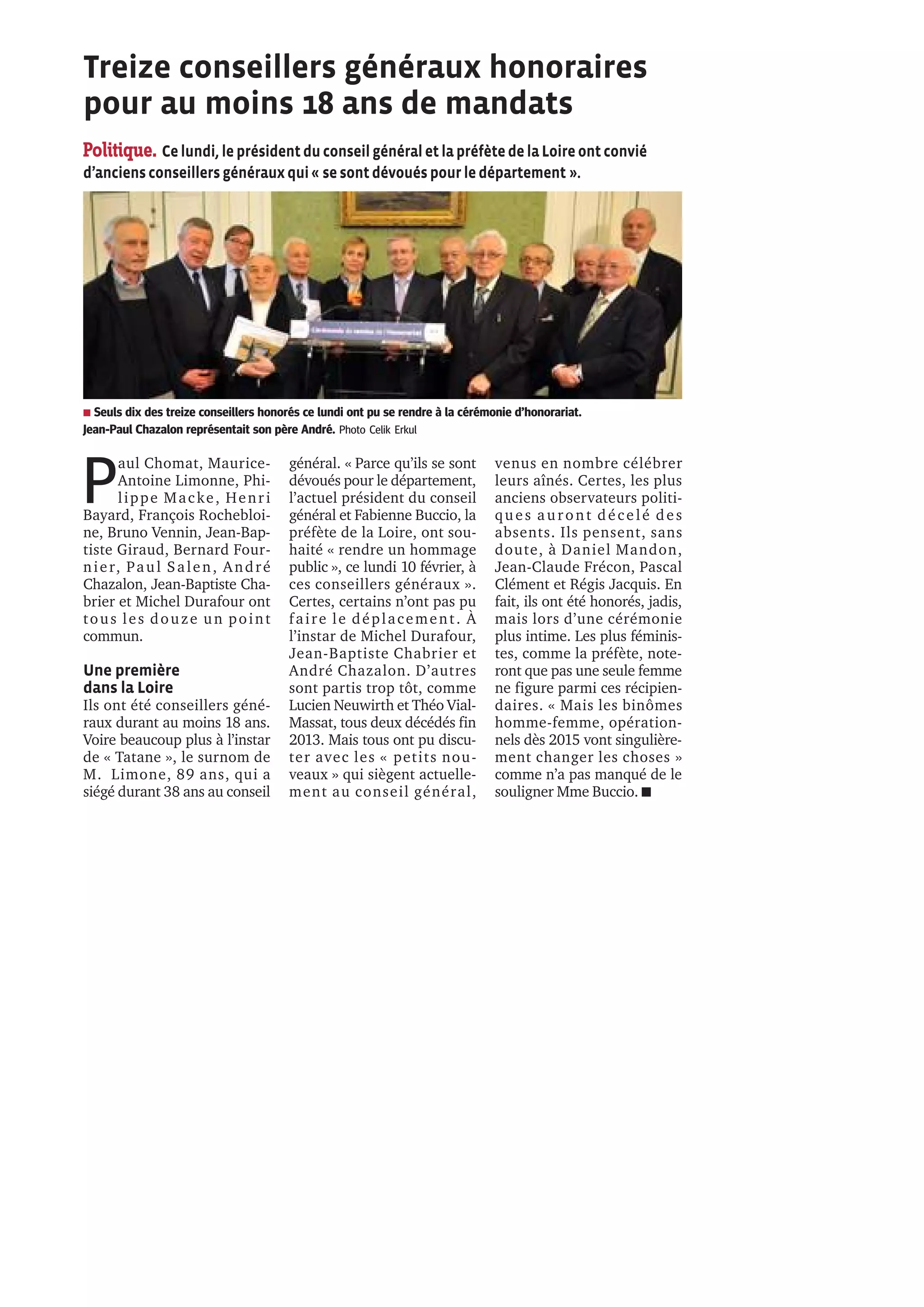 Le document traite des implications politiques des soutiens d'hommes politiques sur les élections municipales à venir, en focalisant sur des personnalités comme François Fillon et Manuel Valls. Il évoque également une cérémonie honorant des conseillers généraux, soulignant leur long engagement, tout en notant l'absence de femmes parmi les récipiendaires, et mentionne des changements à venir dans la représentation politique. En somme, il met en lumière les dynamiques politiques locales et les traditions d'honneur au sein de la Loire.