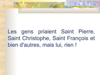 Un saint, contrarié par le manque de prières en sa faveur, consulte Dieu qui lui recommande de distribuer des cartes de visite annonçant qu'il réalise des miracles. En suivant ce conseil et en évitant de donner sa carte à certains groupes de personnes, il devient le saint le plus miraculeux et adoré. Ce récit joue sur le mystère de l'identité de ce saint, laissant le lecteur deviner qui il est.