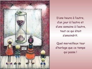 Le document traite de la nature du temps en tant qu'ami qui guérit les blessures et atténue les chagrins. Il souligne l'importance de comprendre que le temps, bien que parfois difficile, nous permet de savourer le bonheur et de gérer la douleur. À travers des réflexions et des citations, il encourage à laisser du temps s'écouler pour mieux apprécier la vie.