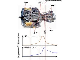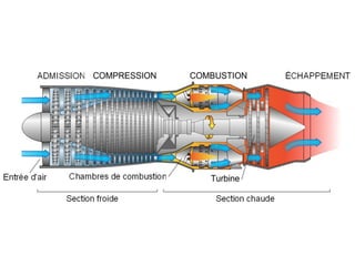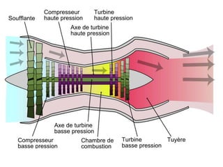 Le document traite des différents types de matériaux utilisés dans les turboréacteurs, notamment les alliages de titane, nickel, acier et aluminium, en mettant l'accent sur leur résistance spécifique. Il aborde également des questions de carburant, de sécurité, et de rendement thermique et propulsif, tout en mentionnant des procédés chimiques associés aux carburants. Enfin, le document explore les alternatives de carburants synthétiques pour améliorer les performances des moteurs.