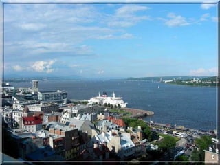 Le document présente une visite historique du Vieux-Québec, mettant en avant ses fortifications, monuments et institutions emblématiques telles que le Palais Montcalm et l'Hôtel-Dieu. Il retrace l'évolution de la ville depuis la colonie française jusqu'à la période contemporaine, soulignant des aspects culturels et architecturaux. Enfin, il évoque les différents régimes politiques ayant marqué le Québec depuis sa fondation en 1608.