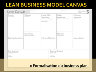 Le document présente le concept de lean startup, une approche innovante qui se concentre sur la validation rapide des idées et l'expérimentation pour répondre aux besoins des clients. Il souligne l'importance de la méthodologie lean dans la création de produits et de services, ainsi que l'apport d'outils comme le MVP et le design thinking pour favoriser l'innovation. Vincent, cofondateur de Madadvisors, partage son expertise en IT et en entrepreneuriat pour accompagner les projets innovants et former des équipes.