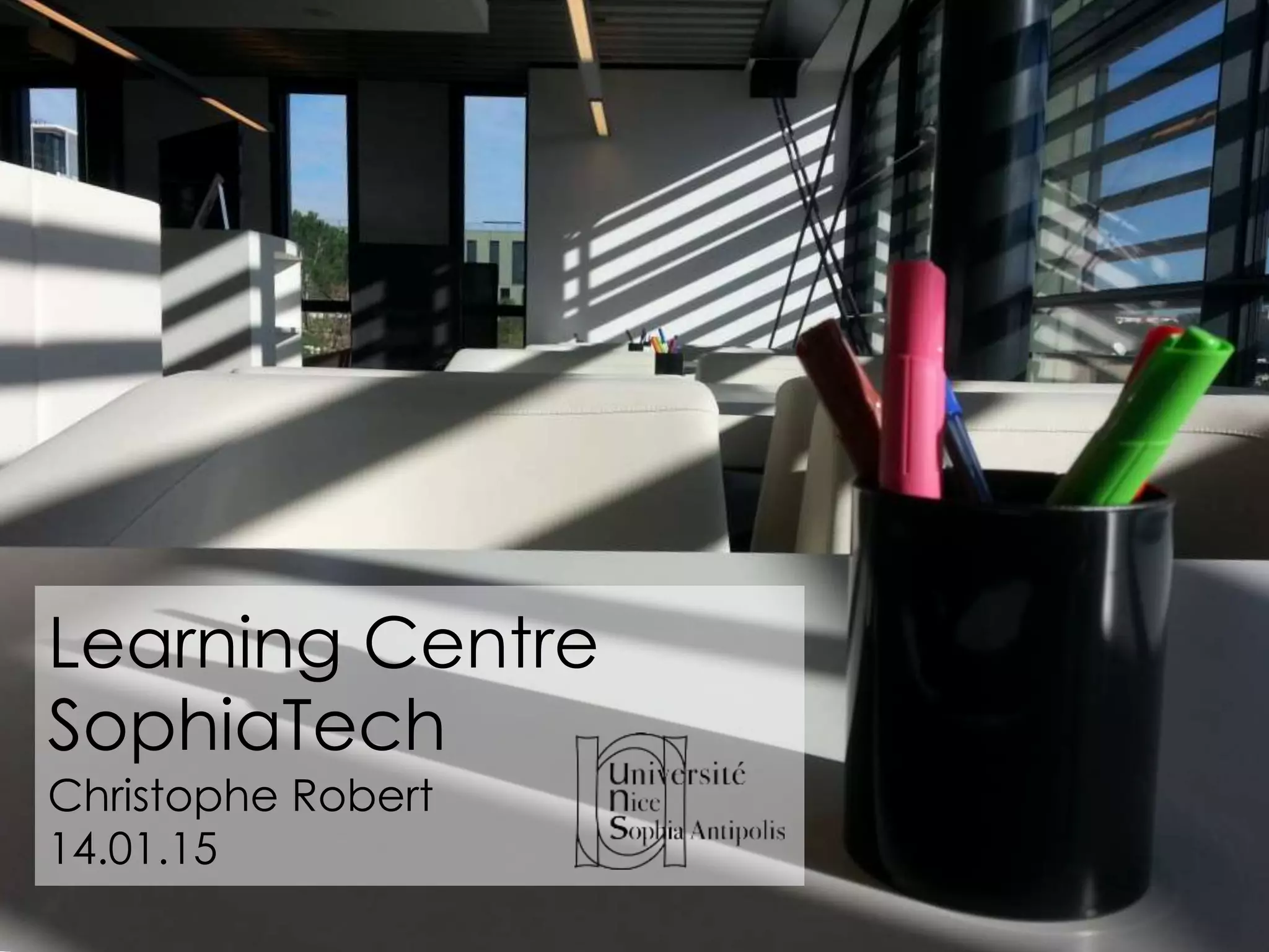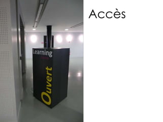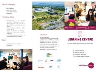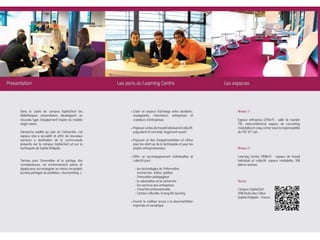 Le document présente les services offerts par le Learning Centre Sophiatech, incluant des formations et des actions culturelles. Il décrit également l'offre documentaire et les partenariats en cours. Enfin, il souligne l'importance de l'accès aux ressources proposées.