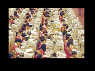 Le document exprime le mécontentement face à de mauvaises conditions de travail, telles que des nuisances sonores, une mauvaise ergonomie et une rémunération insatisfaisante. Il souligne le stress et l'inconfort liés à l'environnement de travail. Des images sont évoquées pour apaiser les travailleurs en détresse.
