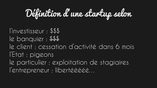 Le document aborde les différents aspects du développement d'une startup, en soulignant l'importance de comprendre les différents points de vue des parties prenantes, comme l'investisseur et le client. Il présente des modèles variés tels que le B2B, B2C et C2C, ainsi que les clés de succès pour chaque approche, incluant la gestion de la qualité de service et l'importance des relations privilégiées. Des exemples concrets comme Slack, Coursera et TokTokTok illustrent les défis et opportunités rencontrés dans le parcours entrepreneurial.