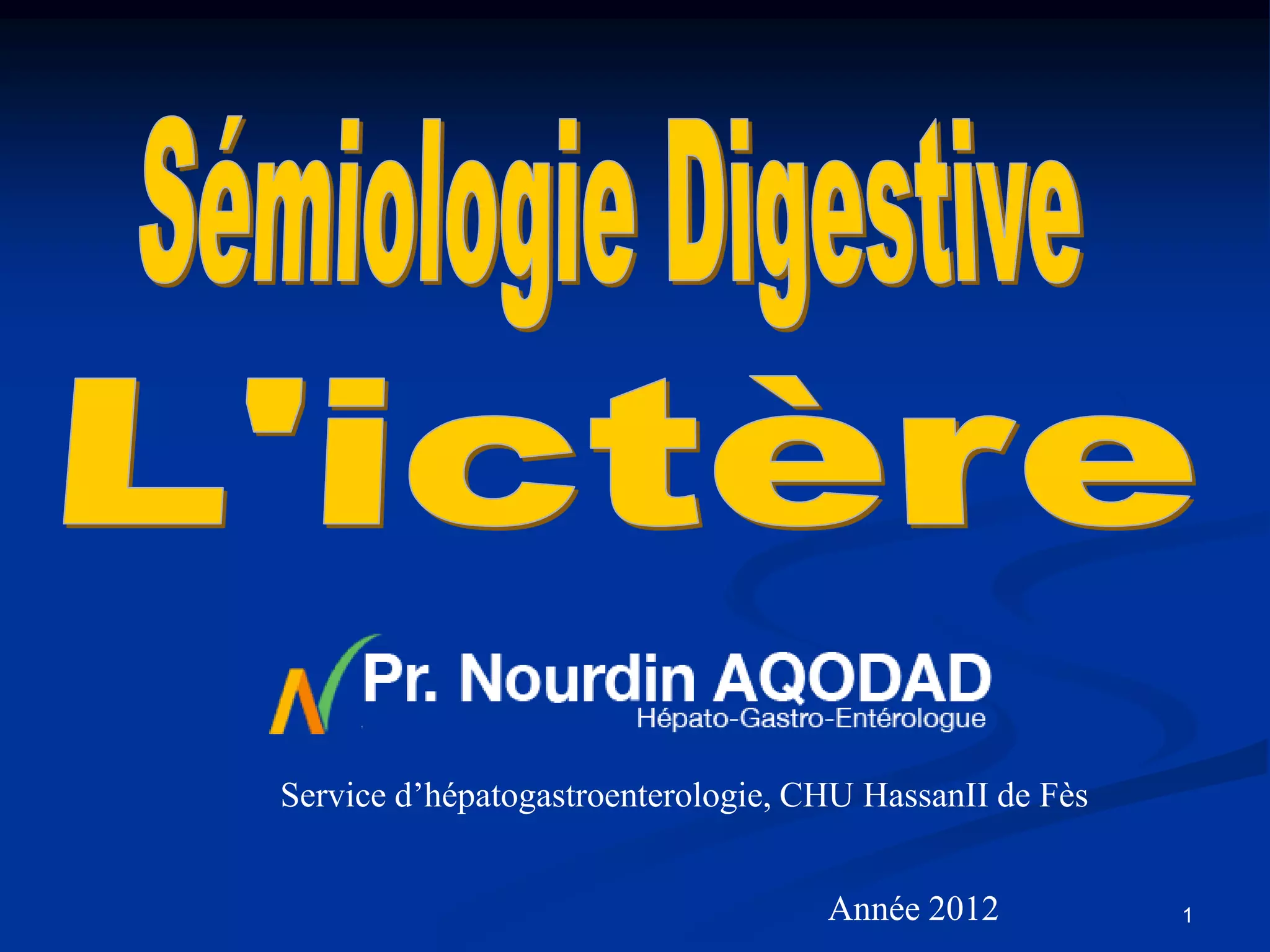Le document traite de l'ictère, une coloration jaune de la peau causée par une accumulation de bilirubine dans le sang, en détaillant les types d'ictères (conjugué et non conjugué) et leurs causes. Il décrit également les méthodes de diagnostic, y compris l'examen clinique, les analyses biologiques et les examens d'imagerie. La conclusion souligne l'importance d'une approche clinique pour distinguer les types d'ictère et déterminer leur étiologie.