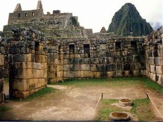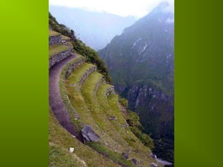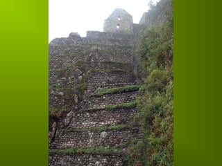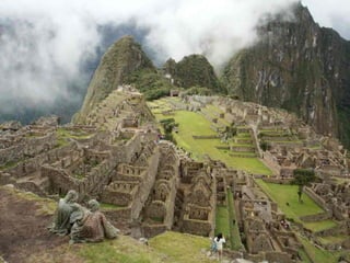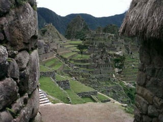 Le document évoque l'installation d'hommes sur un site élevé, le Machu Picchu, et ses terrasses spectaculaires. Il fait référence à la capacité humaine à réaliser des merveilles similaires à celles du passé, comme la Grande Muraille ou les pyramides. Enfin, il suggère qu'il pourrait exister d'autres lieux extraordinaires ailleurs dans l'univers.